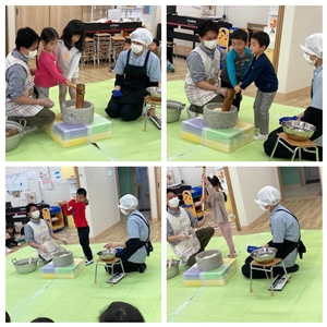 (衛生面を考慮し、ついたお餅ではなく、調理室で調理したお餅をお出ししています。)