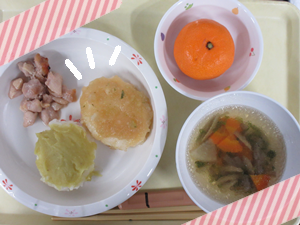 昼食には、「大根おろし」と「さつまいもあん」ののったお餅が出ました。