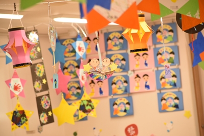 お部屋いっぱいに、子どもたちの製作が飾られています☆