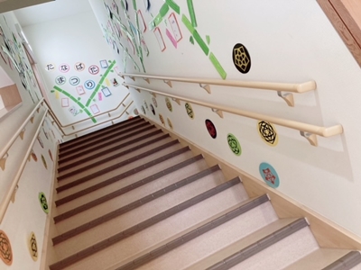2階へと続く階段は、みんなの願い事をはじめ、七夕気分が盛り上がる飾りつけがされています!