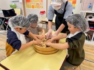 今日は外部より先生をお招きして、お味噌作りをしました!